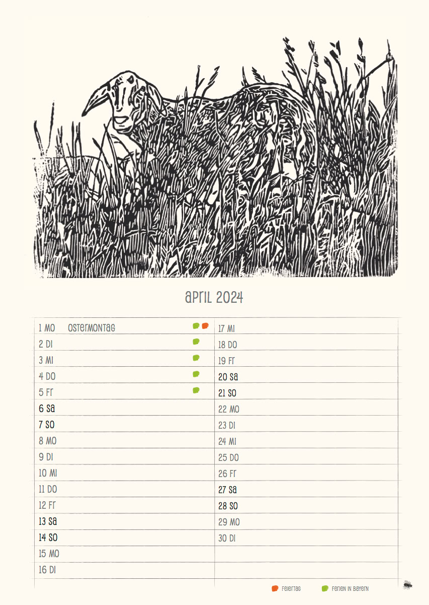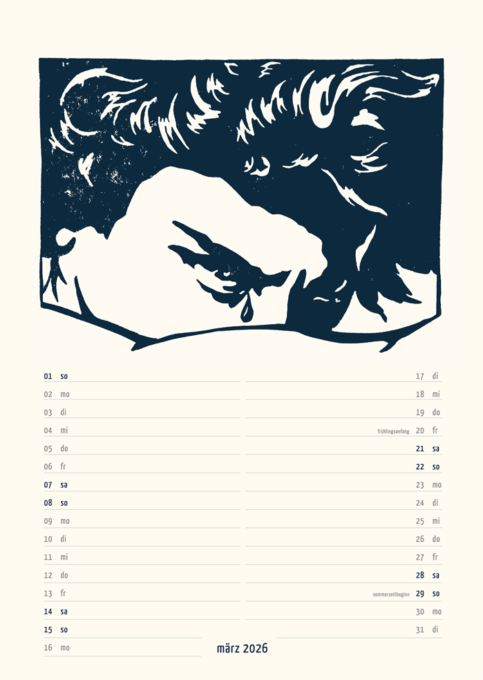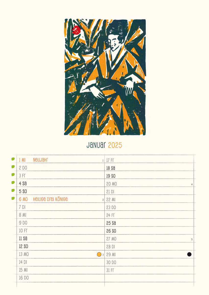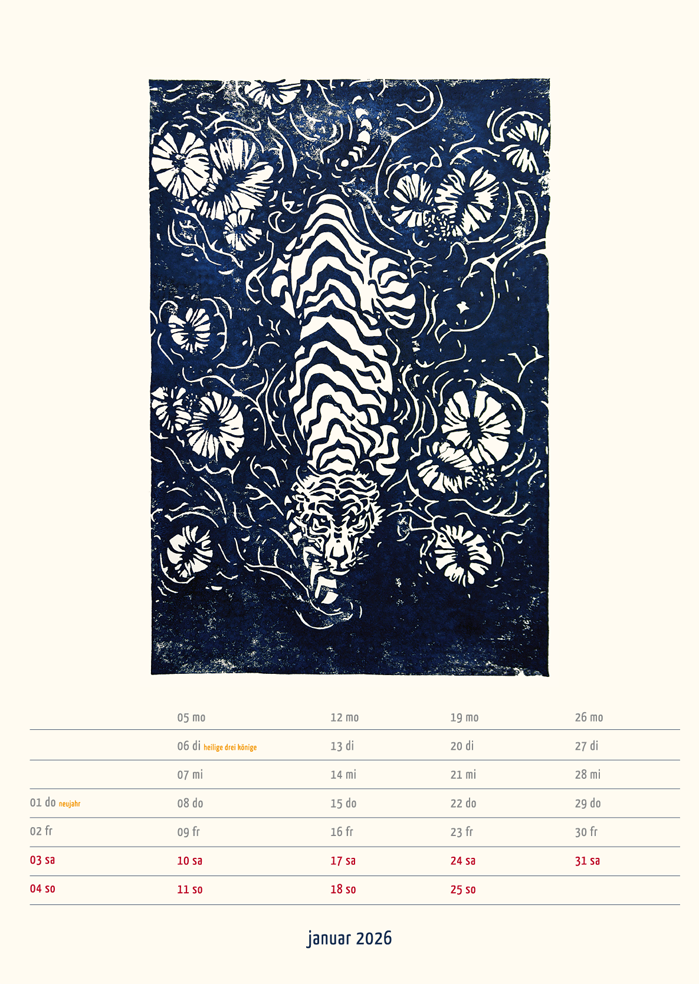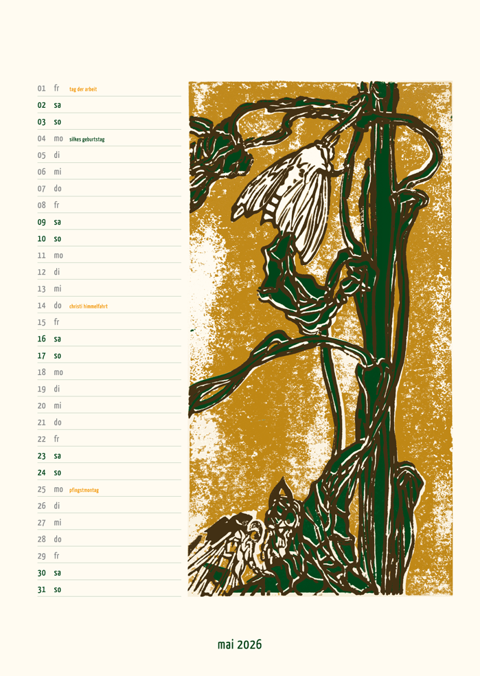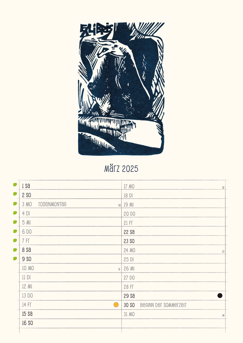 jedes jahr ein neuer kalender mit motiven aus unserem arbeitszyklus.