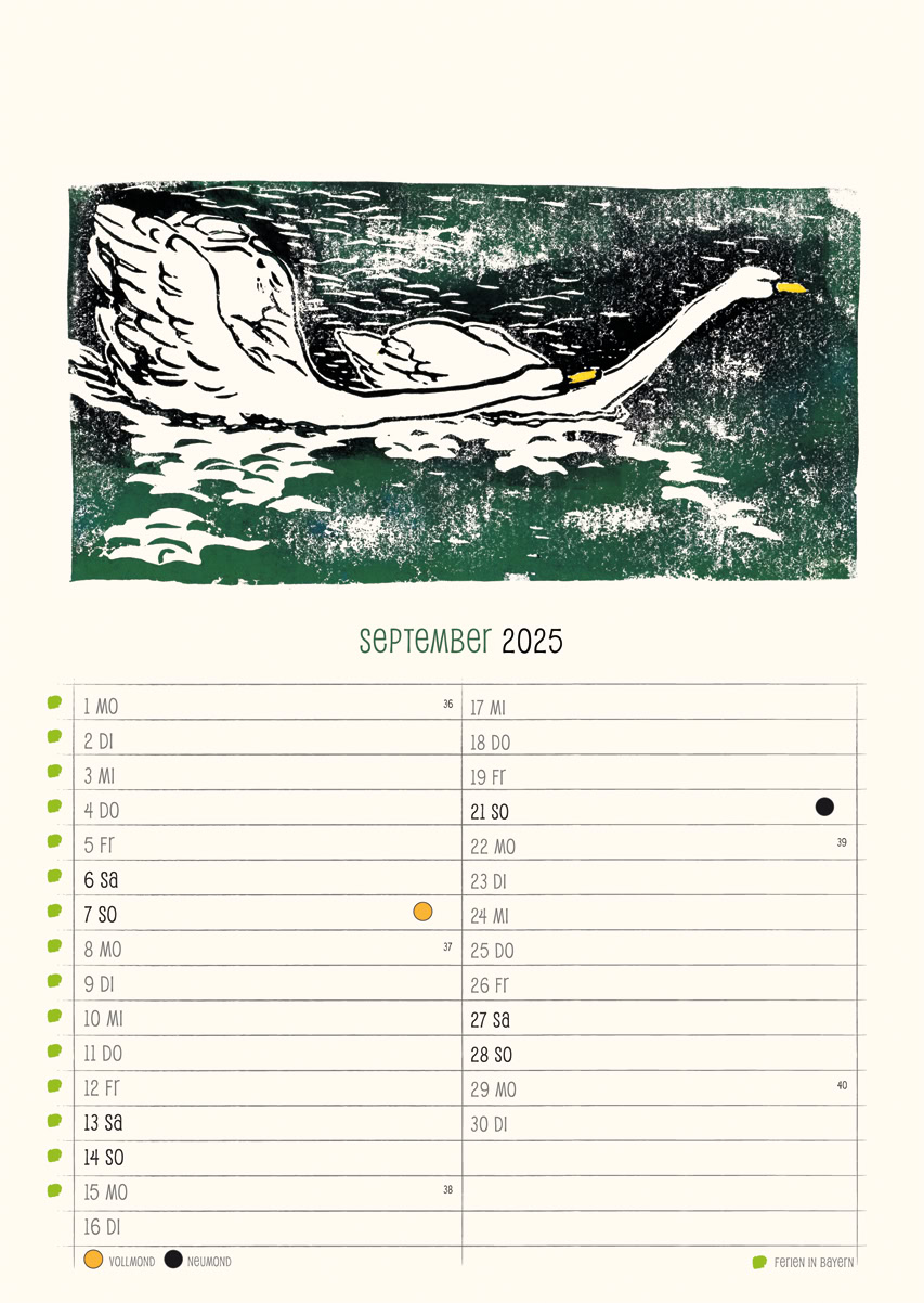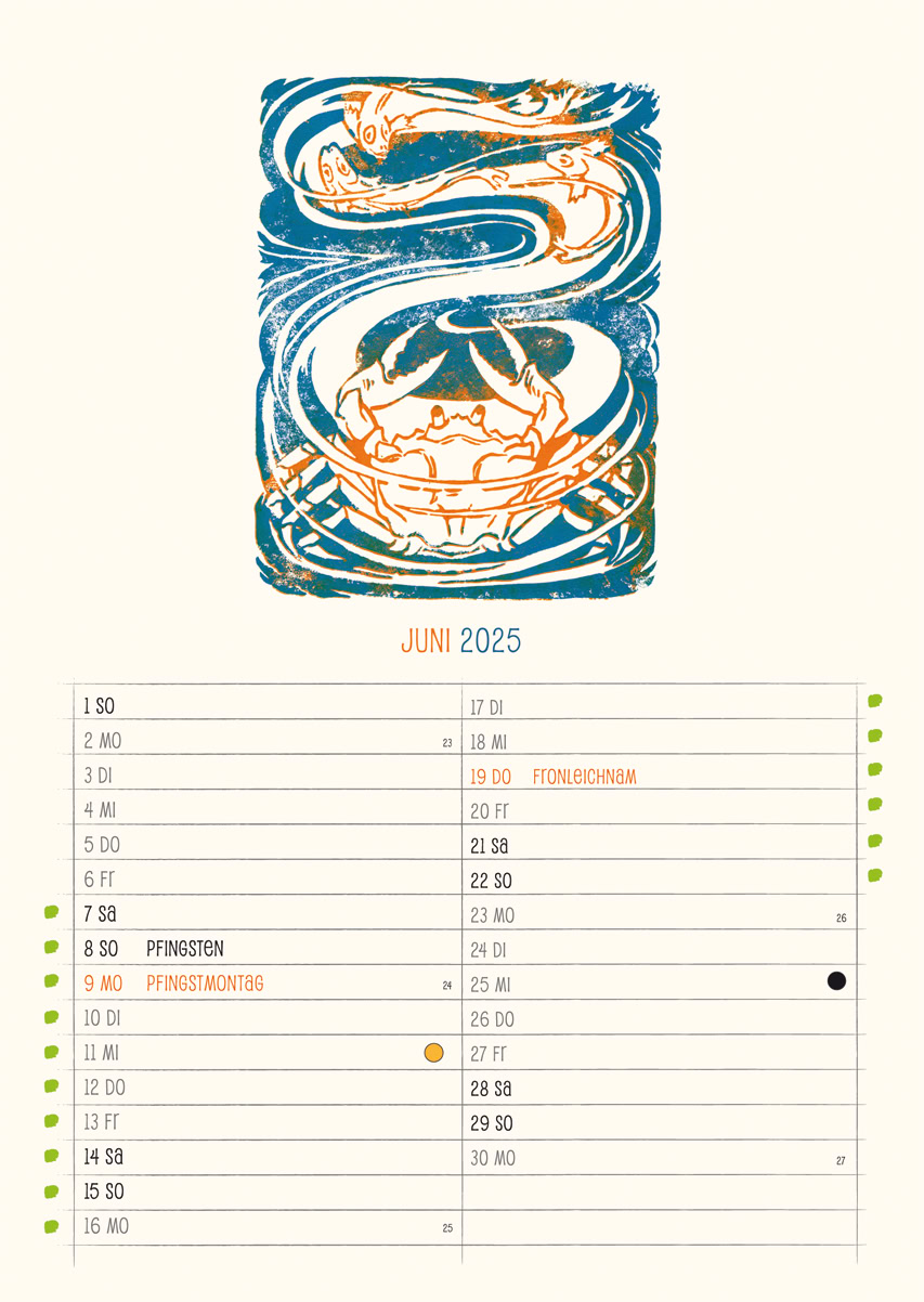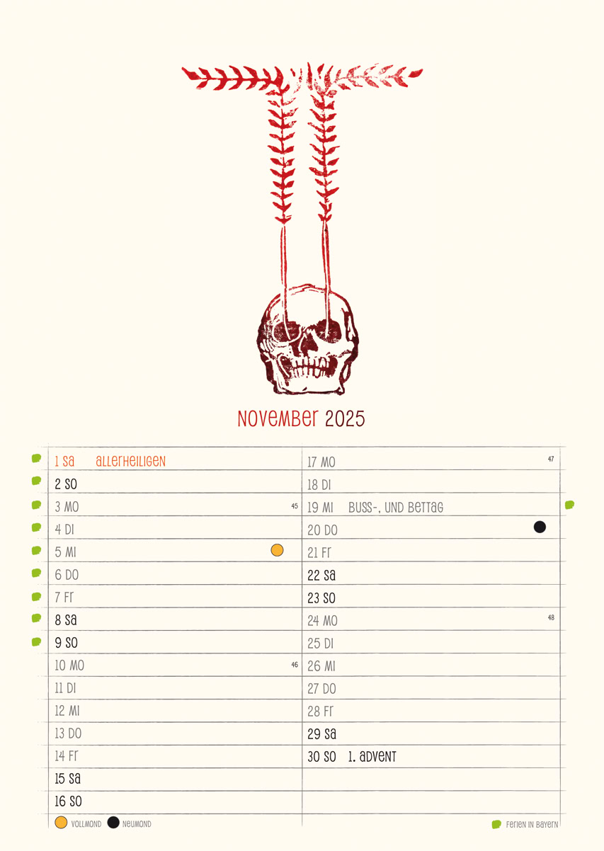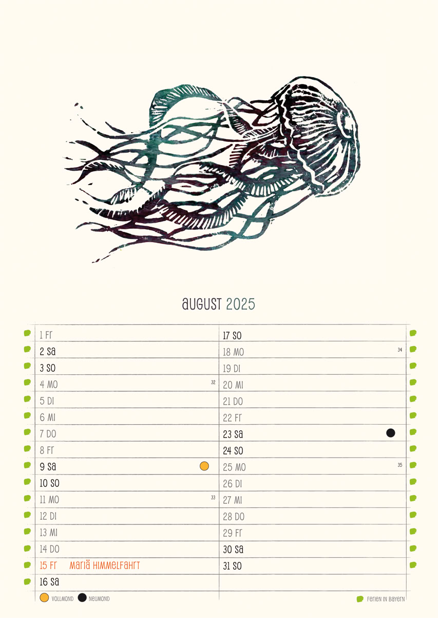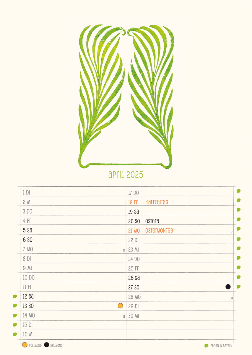 jedes jahr ein neuer kalender mit motiven aus unserem arbeitszyklus.