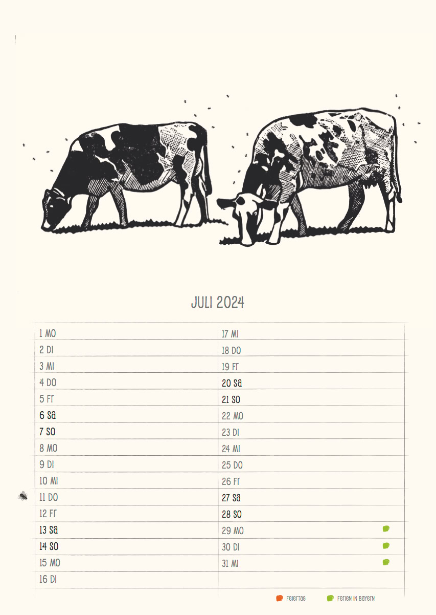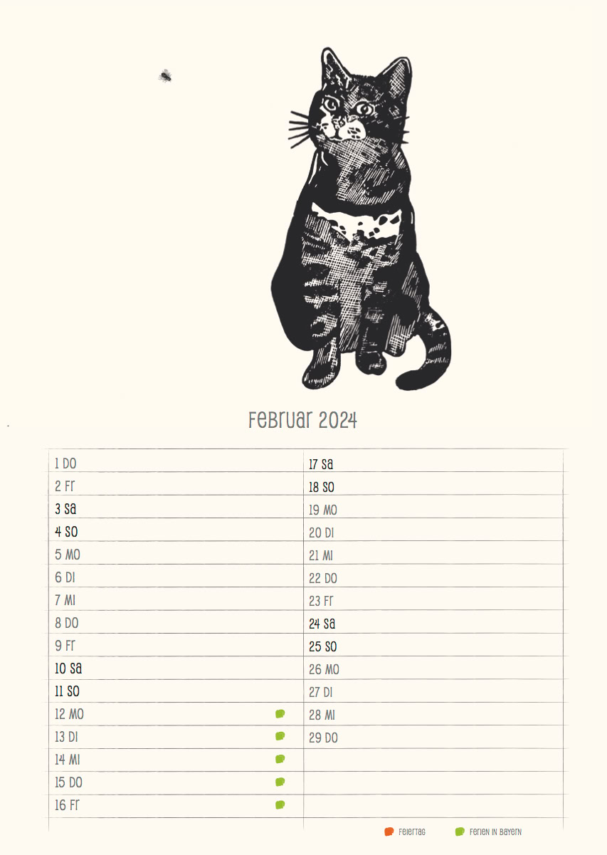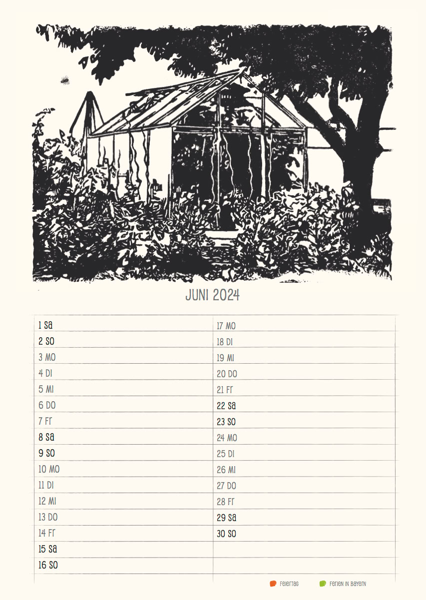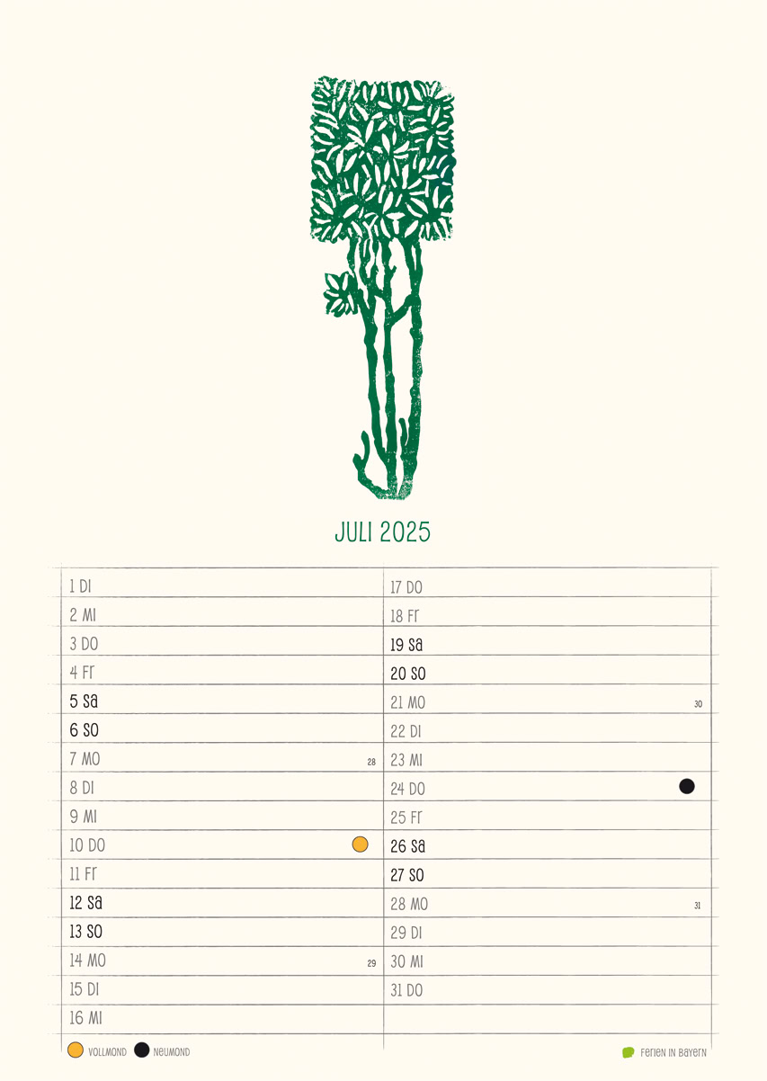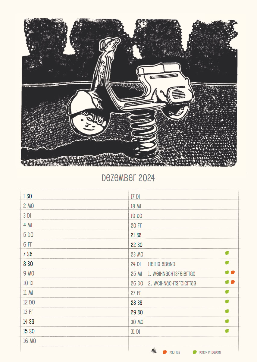 jedes jahr ein neuer kalender mit motiven aus unserem arbeitszyklus.