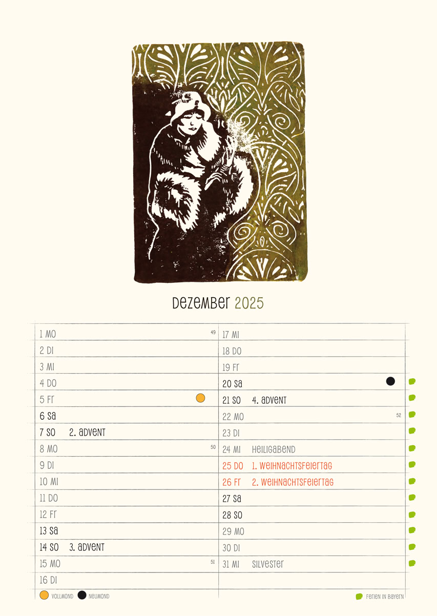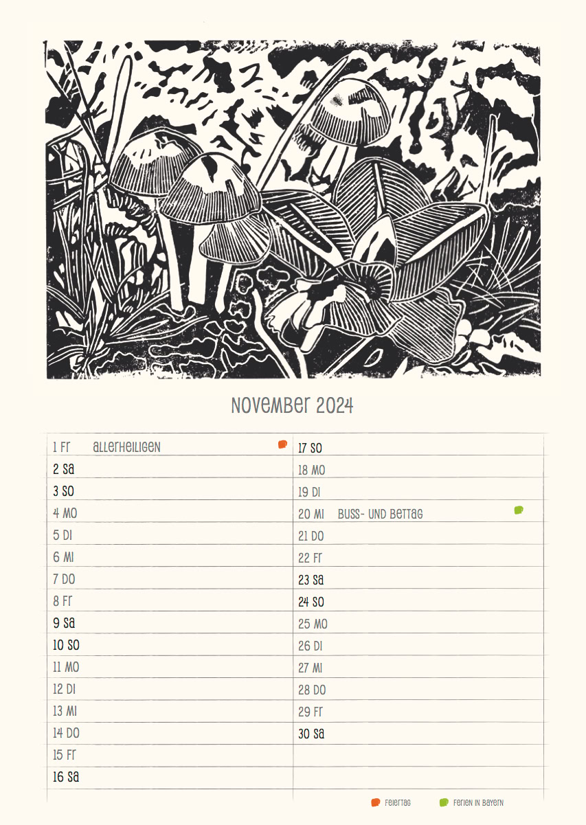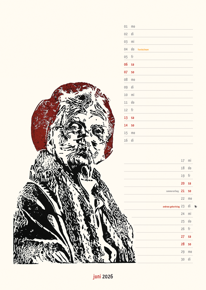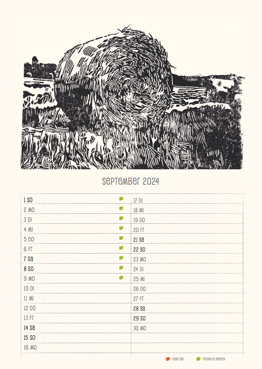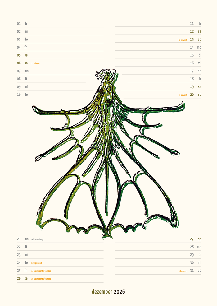 jedes jahr ein neuer kalender mit motiven aus unserem arbeitszyklus.