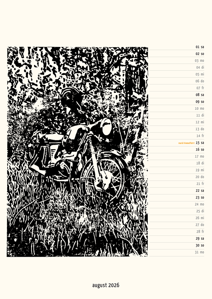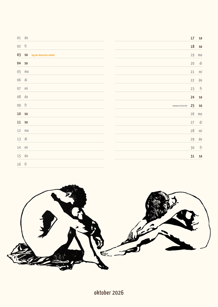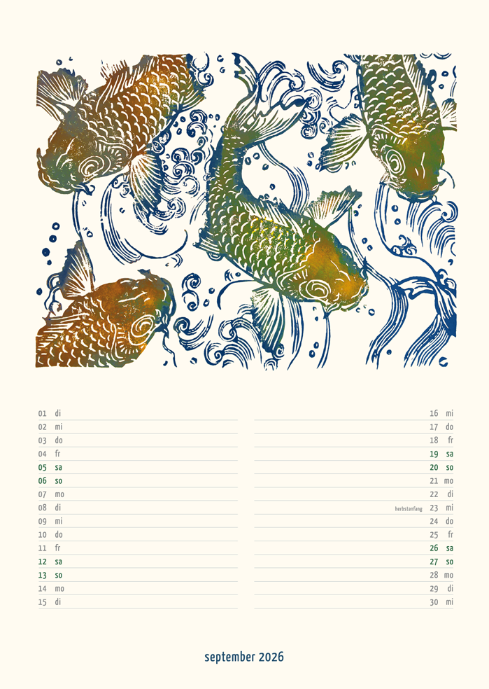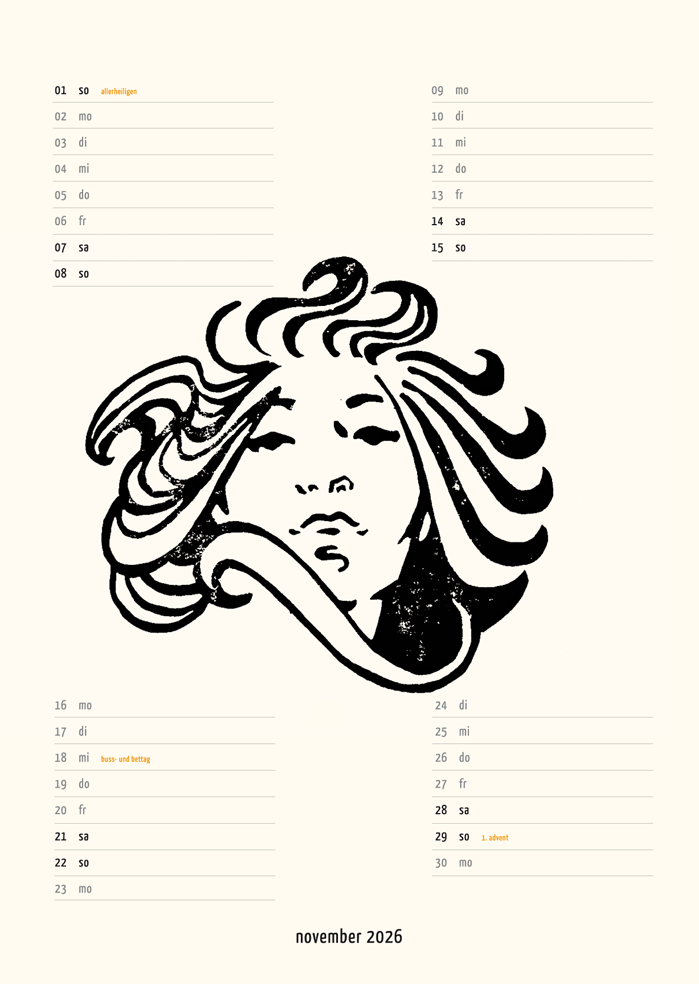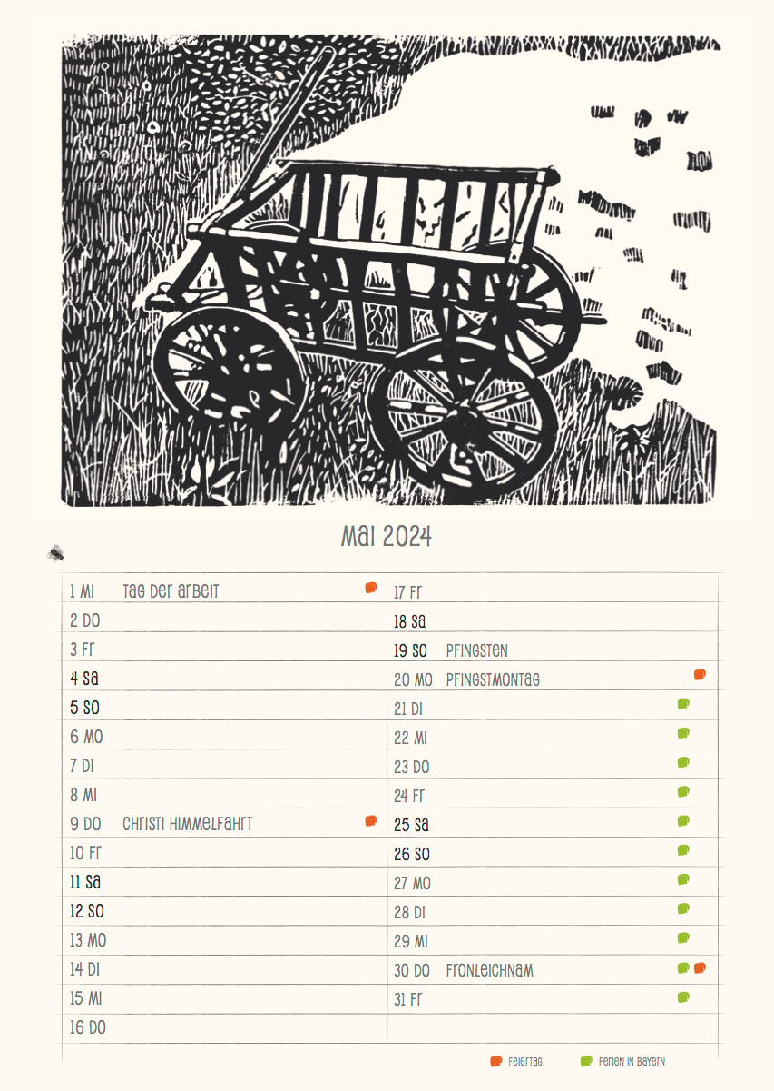 jedes jahr ein neuer kalender mit motiven aus unserem arbeitszyklus.