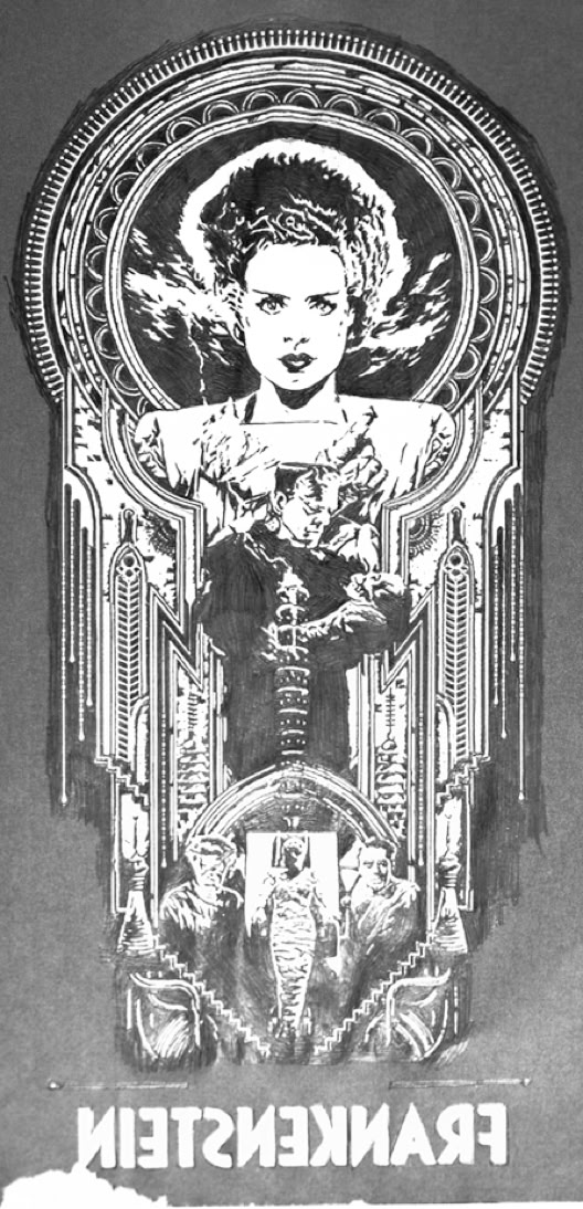 Im Allgemeinen fertigt man zunächst einen Entwurf. Das kann eine Vorzeichnung auf Papier, ein Papierschnitt aus schwarzem Papier oder eine Zeichnung direkt auf der Linolplatte sein.